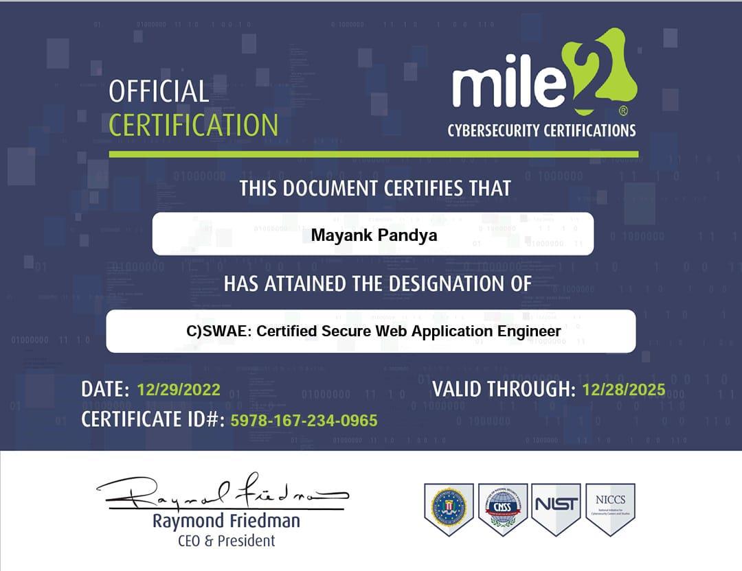 • Certified Secure Web Application Engineer