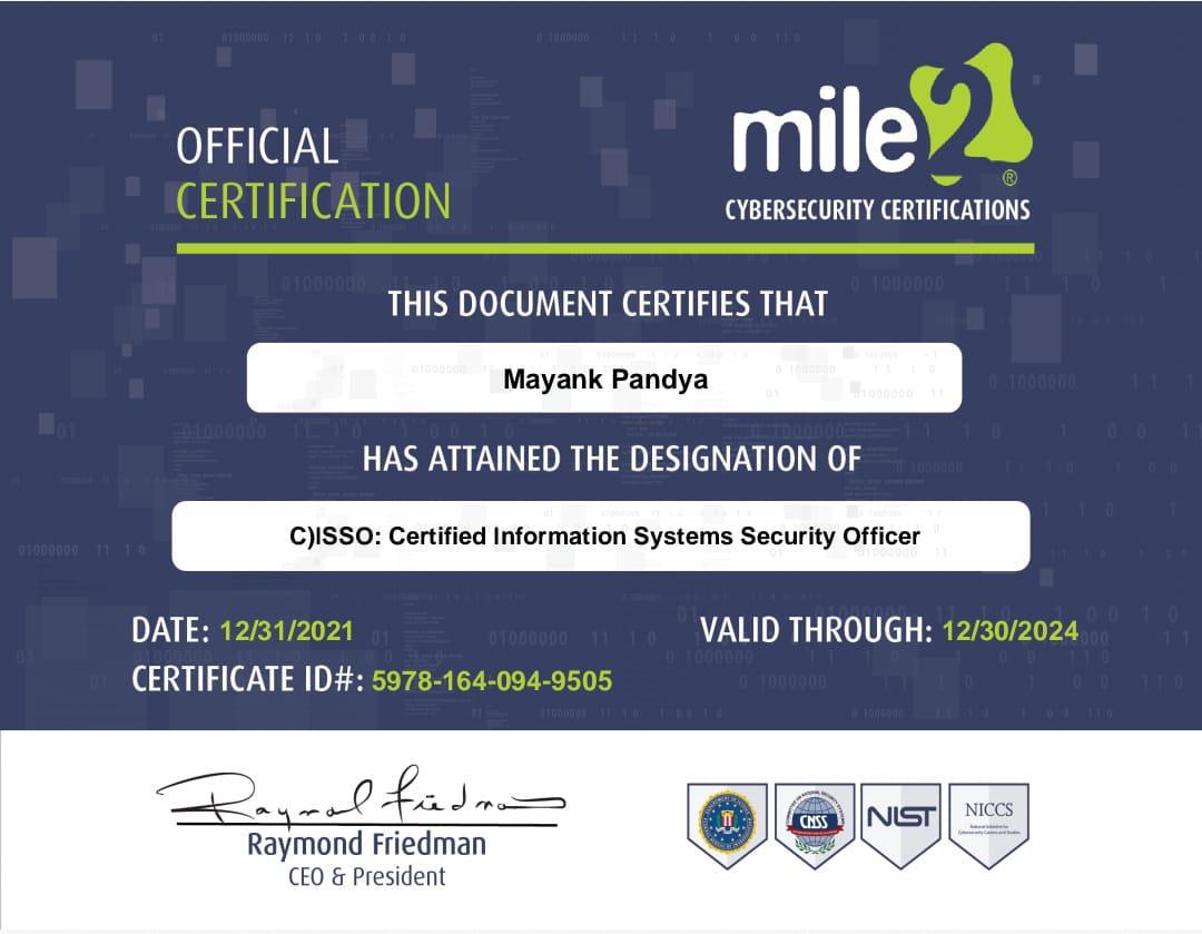 • Certified Information System Security Officer (CISSO)